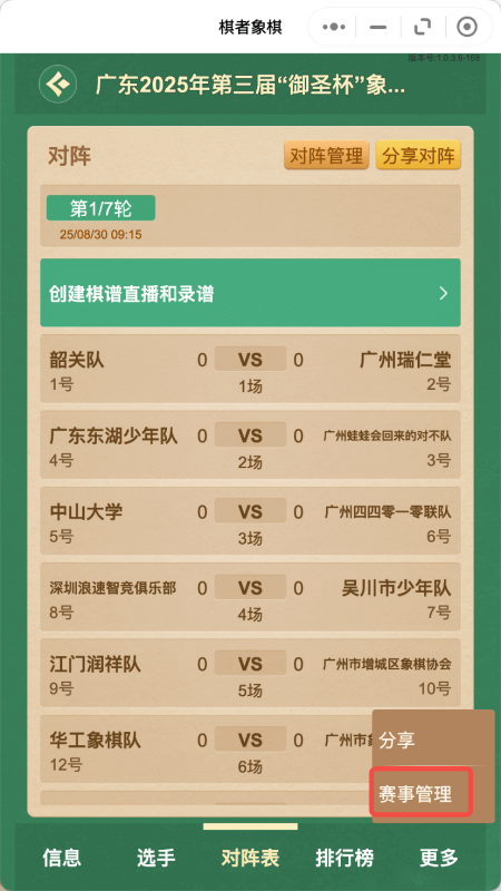 - 支持在对阵表,一站式快速创建棋谱直播和赛后录谱,所见即所得。
