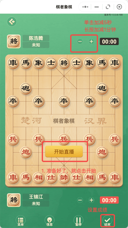 - 只有红方走了第一步,才开始倒计时,不用担心开始直播红方倒计时启动。